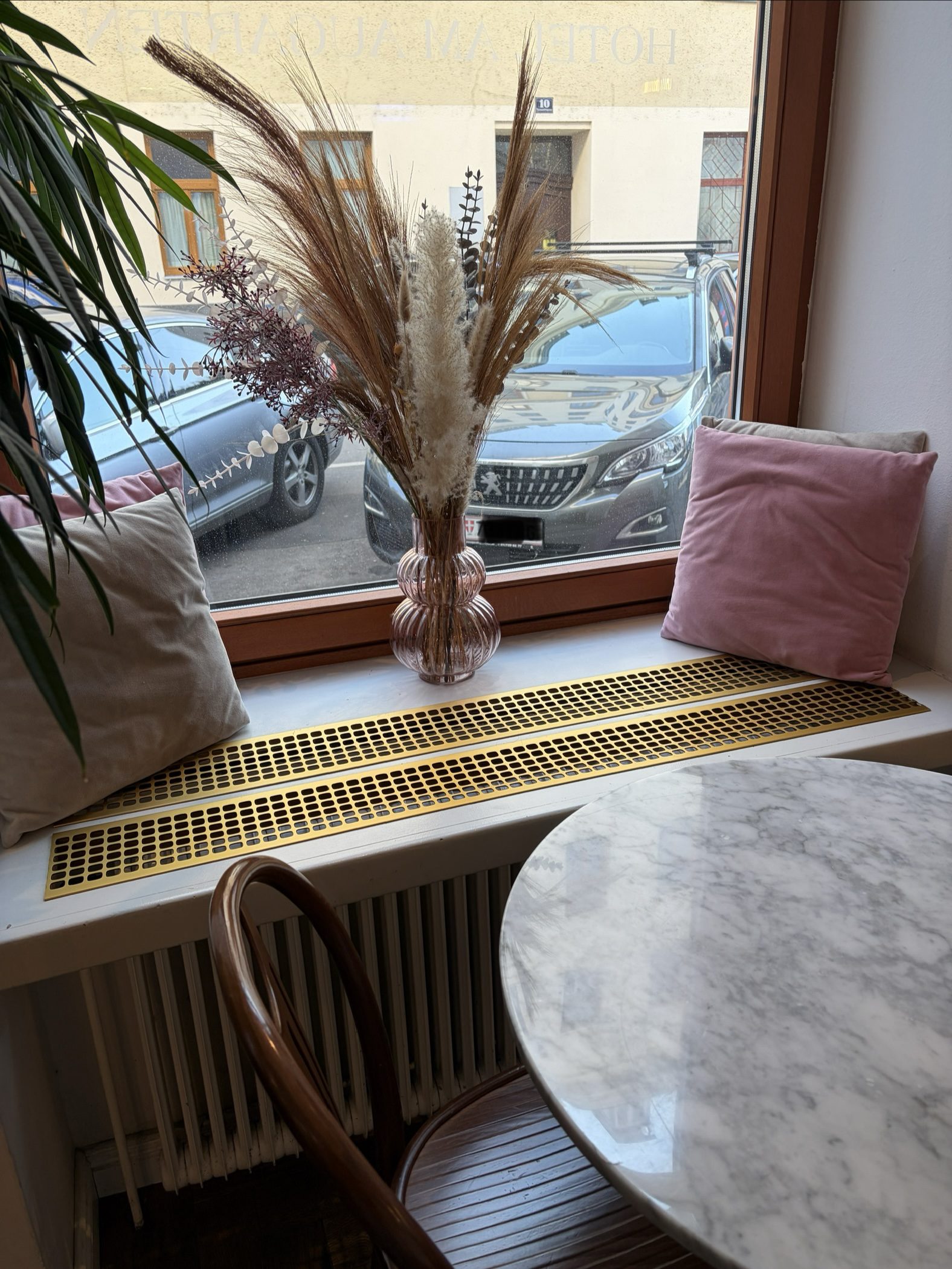 So ging es nämlich mir und ich bin deshalb zunächst im Hotel herumgeirrt. Aber es stimmt tatsächlich: Das Frühstück wird im Babula nicht in einem eigenen Lokal, sondern quasi direkt bei der Rezeption serviert, die sich somit im Frühstücksraum befindet. Interior: klassisch-schlicht mit einem Hauch von Pinterest-Deko. Das Service: überaus aufmerksam. Die Speisekarte: Kategorie Qual der Wahl. Daher entschied ich mich letztlich für die Babula Veggie Combo, die aus Eierspeise, Avocado, Feta, Rote Rüben Hummus, Roggenbrot von Joseph und Porridge bestand. Testurteil: Sehr gut! Wie so oft wäre etwas mehr Brot besser gewesen, aber das ist Jammern auf sehr hohem Niveau.